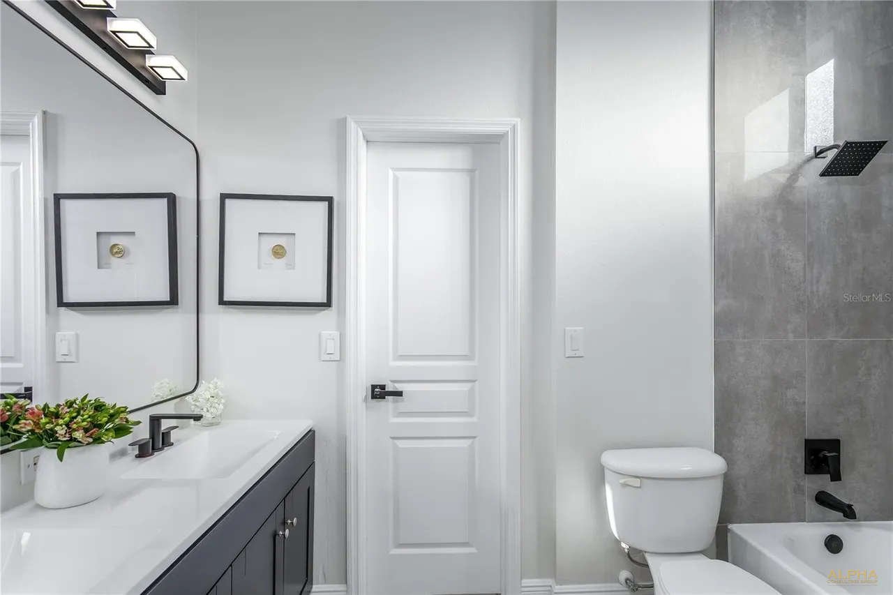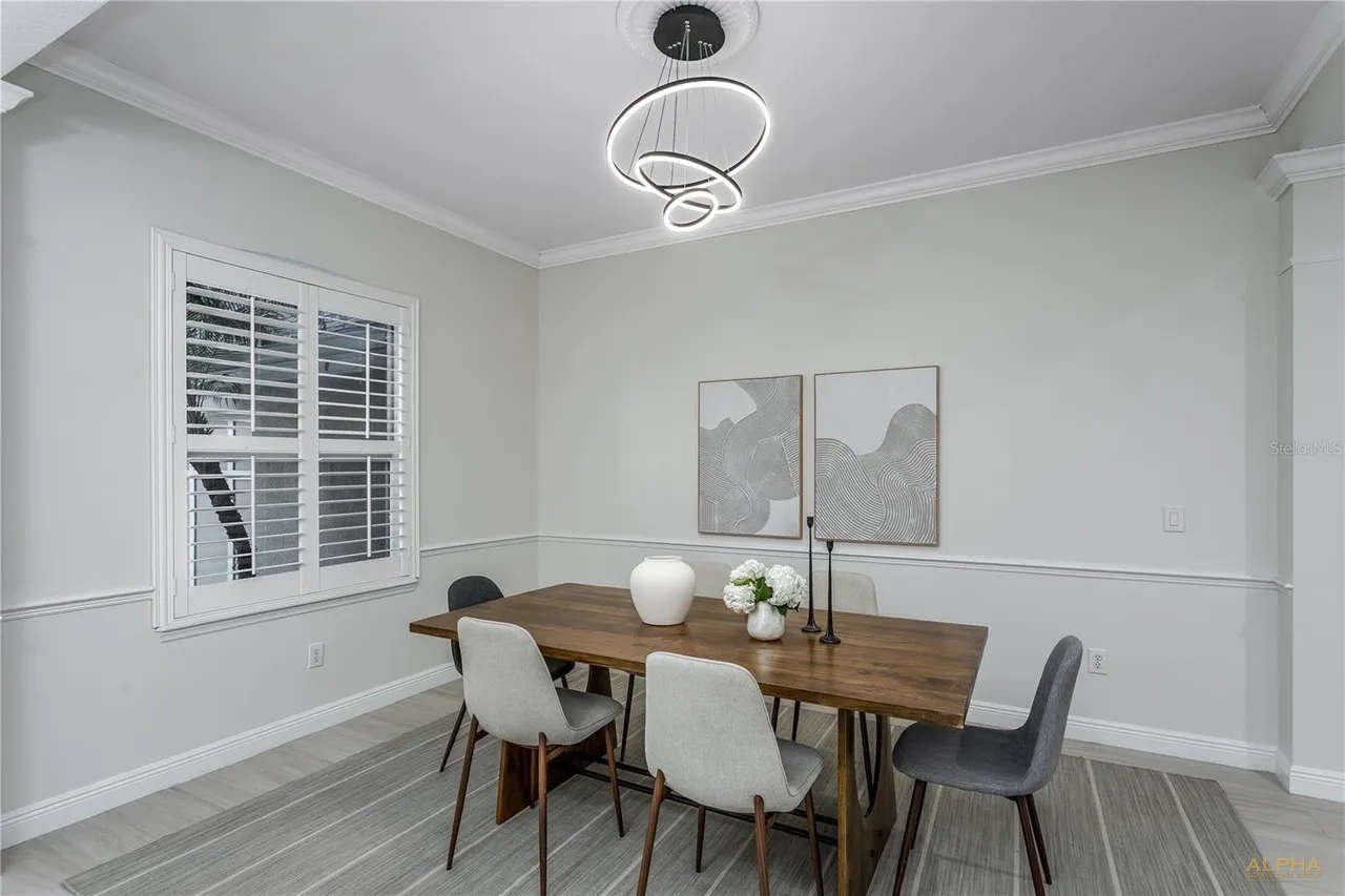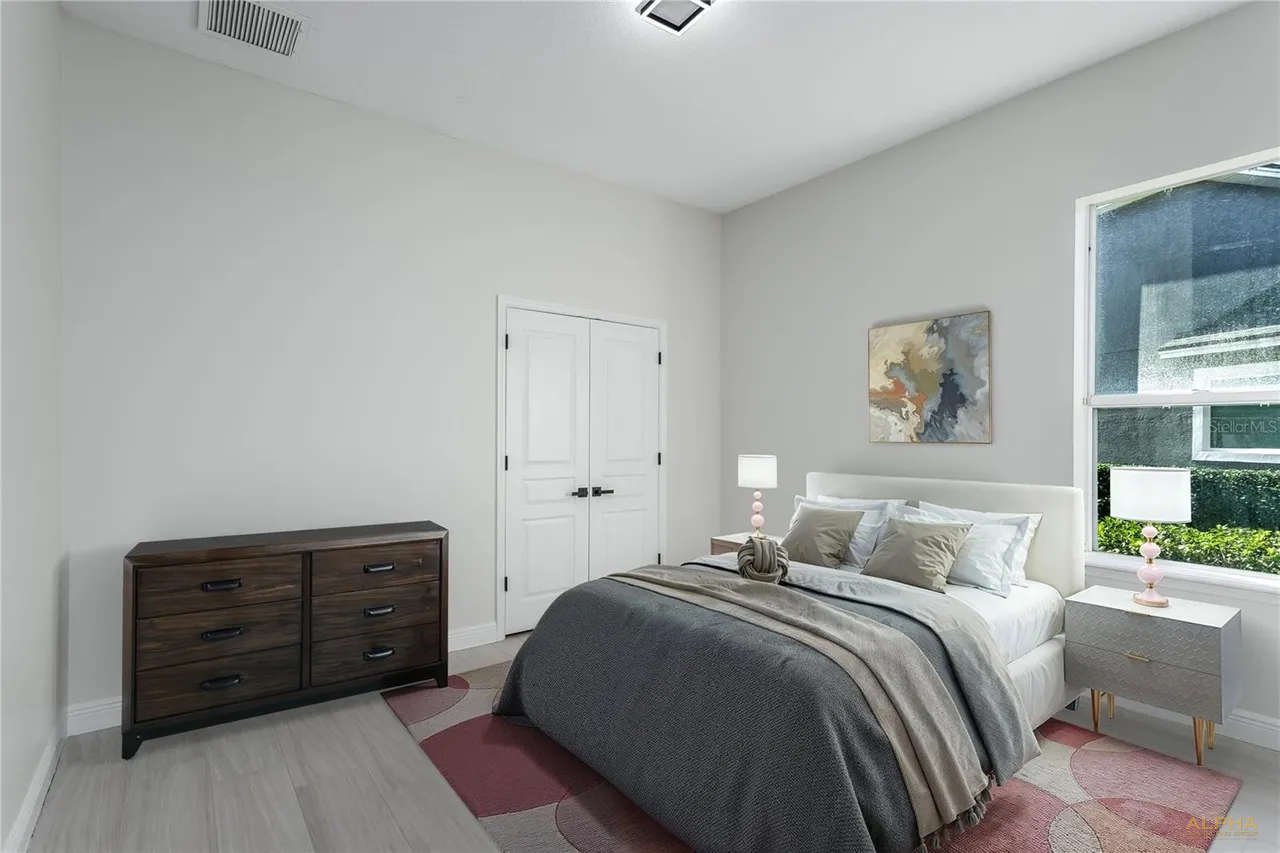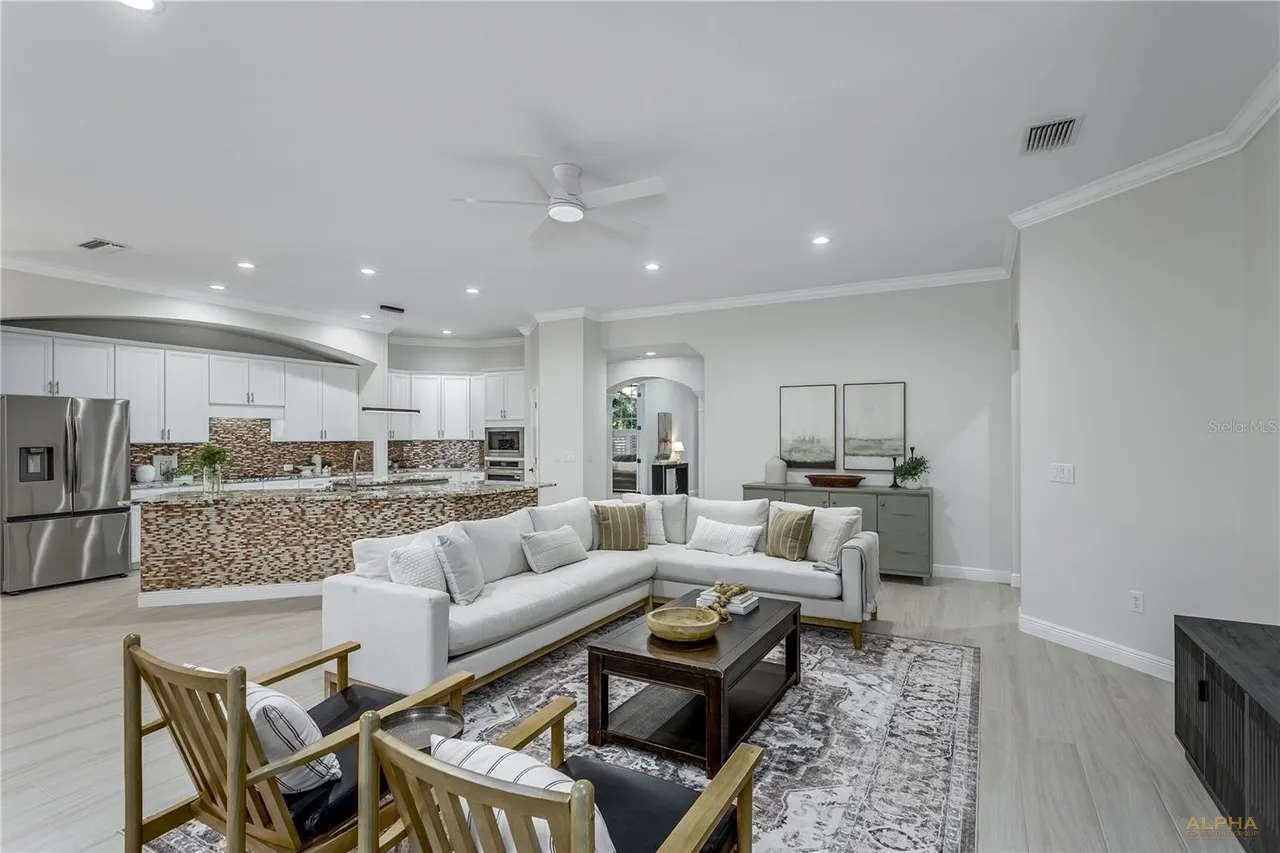 Enjoy RESORT-STYLE living with endless amenities including an AMAZING 6,400 sq ft clubhouse with an on-site activities coordinator, 2 pools w/a spiral waterslide, fitness center, basketball courts, 3 tennis courts, 4 pickleball courts, athletic field, playground, & a top-rated school district! This is a rare opportunity to own a gorgeous 1/3 acre estate located in on a low traffic, cul-de-sac street. This spectacular 5 bedroom + BONUS Room + Movie Theater + OFFICE + 3.5 baths also offers an expansive driveway and mature landscaping + a 550 (40×30) garage. The outdoor oasis feels like a resort with a screened-in lanai with a pool & spa and a pavered patio plus two large side yards on a pie shaped lot. A grand foyer entryway opens into a formal dining room and a large private office (could be a bedroom) tile plank floors, crown molding. The Chef’s kitchen showcases 42″ wood cabinetry with Granite counters, a double island and a stainless appliance package that includes a cooktop (gas hook up) and a double oven/microwave combo + pantry. The kitchen opens into a spacious family room and a second dining area. There are two wings adjacent to the living room. Each wing has a fully remodeled bathroom and two guest bedrooms. The spacious primary suite features a double primary suite and the primary bathroom was just remodeled and highlights a double vanity and a separate area for a third vanity, an oversized shower, and a freestanding tub and a large custom walk-in closet. There is almost 800 feet upstairs that incorpartes a bonus room with a pool table and a movie theater with reclining leather chairs and a projector/screen (can be converted in a bedroom) plus a 1/2 bathroom completes the second story of the home. Additional Upgrades include: NEW GAF Dimensional Shingle Roof 2024, Three NEW Bathrooms 2025, NEW Interior Paint 2025, Tile Plank Floors, NEW Water Heater 2025, Hurricane Shutters, Plantation Shutters.