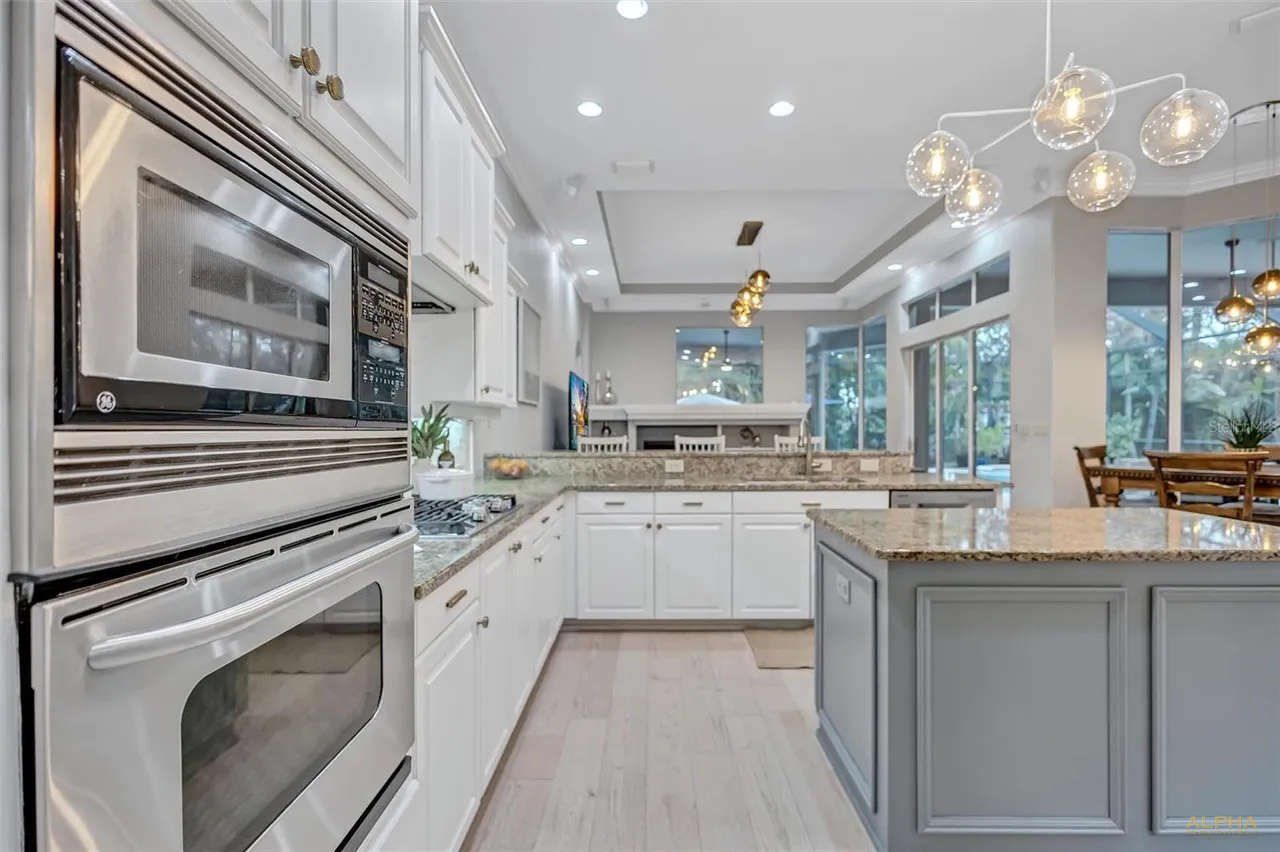 The HOME is situated on a VERY small friendly street, SAFE for the little ones to learn riding their bikes and roam around with their friends. OVERSIZED paver driveway. Built by ARTHUR RUTENBERG, this executive home offers an amazing and well thought-out floor plan and all the right rooms and spaces. An office in front of the house and away from the bedrooms, and a LARGE bonus room in the back of the home that can be a play room, a home-school classroom, a home gym etc! The secondary bedrooms are of VERY GENEROUS size (12×12’4′ and 12×12’8″). High quality of construction with tall ceilings, large windows and A LOT of natural light. The 12-ft ceilings is one of this reputable builder’s features – they make the home feel so spacious & airy & light. Kitchen offers extensive cabinet & surface space, granite countertops, an island & stainless-steel appliances. The open-concept layout is perfect for family evenings or entertaining friends. Luxury vinyl plank floors throughout the home. HUGE master suite offers a sitting area w/sliders accessing the pool area. The POOL area and OUTDOOR kitchen are private and offer open and covered areas – perfect for Florida living! Green open space on the side of the yard to make a play ground for kids or your furry friends.